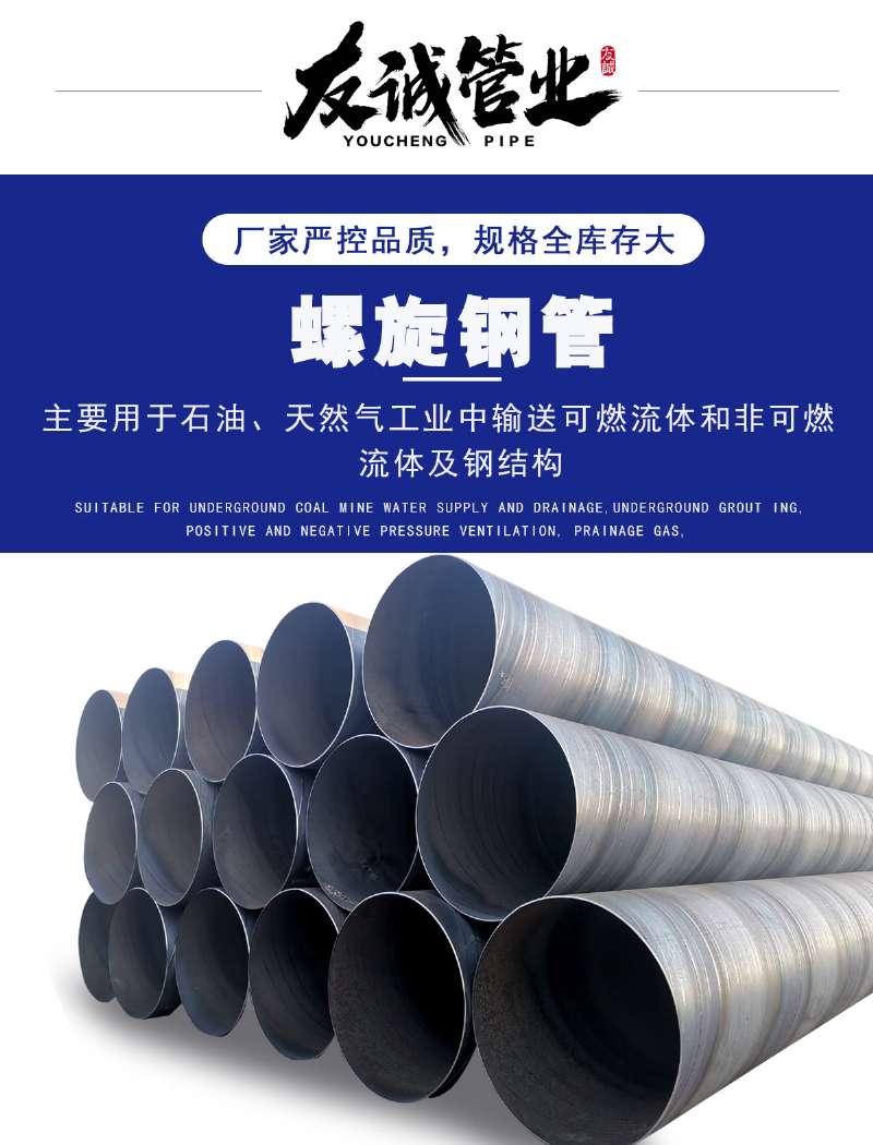 滄州友誠(chéng)管業(yè)法蘭焊接鋼管專業(yè)生產(chǎn)廠家,法蘭焊接國(guó)標(biāo)螺旋鋼管埋弧焊是以連續(xù)送時(shí)的焊絲作為電極和填充金屬。焊接時(shí),在焊接區(qū)的上面覆蓋一層顆粒狀焊劑,電弧在焊劑層下燃燒,將焊絲端部和局部母材熔化,形成焊縫。在電弧熱的作用下,上部分焊劑熔化熔渣并與液態(tài)金屬發(fā)生冶金反應(yīng)。熔渣浮在金屬熔池的表面,一方面可以保護(hù)焊縫金屬,防止空氣的污染,并與熔化金屬產(chǎn)生物理化學(xué)反應(yīng),改善焊縫金屬的萬(wàn)分及性能;另一方面還可以使焊縫金屬緩慢泠卻。埋弧焊可以采用較大的焊接電流。與手弧焊相比,其*da的優(yōu)點(diǎn)是焊縫質(zhì)量好,焊接速度高。因此,它特別適于焊接大型工件的直縫的環(huán)縫。而且多數(shù)采用機(jī)械化焊接。埋弧焊已廣泛用于碳鋼、低合金結(jié)構(gòu)鋼和不銹鋼的焊接。由于熔渣可降低接頭冷卻速度,故某些高強(qiáng)度結(jié)構(gòu)鋼、高碳鋼等也可采用埋弧焊焊接。埋弧焊鋼管:是以帶鋼卷板為原材料,經(jīng)常溫?cái)D壓成型,以自動(dòng)雙絲雙面埋弧焊工藝焊接而成的螺旋縫鋼管。埋弧焊螺旋鋼管是以連續(xù)焊絲作為電極和填充金屬,工作時(shí)在焊接區(qū)的上面覆蓋一層顆粒狀焊劑,電弧在焊劑層下燃燒,將焊絲端部和局部母材熔化,形成焊縫在電弧熱的作用下,上部分焊劑熔化熔渣并與液態(tài)金屬發(fā)生冶金反應(yīng)。熔渣浮在金屬熔池的表面,一方面可以保 護(hù)焊縫金屬,防止空氣的污染,并與熔化金屬產(chǎn)生物理化學(xué)反應(yīng),改善焊縫金屬的萬(wàn)分及性能;另一方面還可以 使焊縫金屬緩慢泠卻。